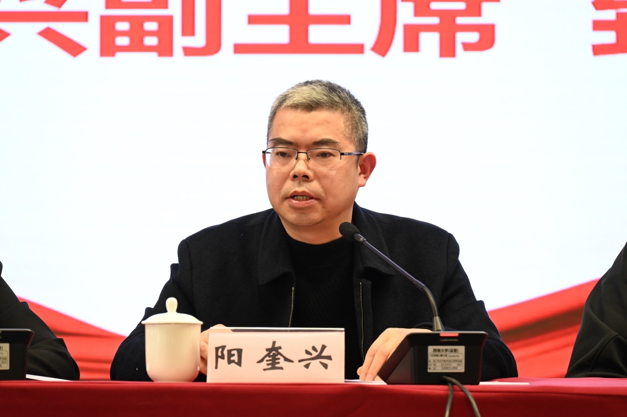 重庆市社科联党组成员阳奎兴副主席在致辞中指出,本次论坛的召开契合十九届六中全会提出的“抓好后继有人的根本大计”,对深化习近平新时代中国特色社会主义思想研究、丰富完善全面建设小康社会理论、创新马克思主义理论学科建设和培养新时代青年学者必将起到积极推动作用。同时阳主席用“学习”、“转化”、“引导”三个关键词鼓励课题组深入学习研究十九届六中全会精神,推动成果转化,发挥智囊团和思想库的作用,把科学研究和人才培养相结合,同时做好传帮带工作。