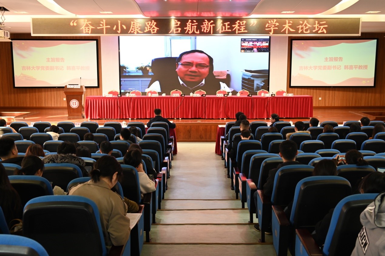 吉林大学党委副书记韩喜平教授在线上作了题为“马克思主义中国化新的飞跃”的主旨报告。韩喜平教授指出,要看到“全面建成小康社会”是实现第一个百年奋斗目标和推动实现第二个百年奋斗目标的坚实基础,具有两个方面的重大价值;并从“坚持马克思主义基本原理”、“坚持与中国实际紧密结合”、“植根中国文化”、“马克思主义中国化理论的新延续”、“立足新时代”、“面临新的任务”六个层面,以简明精炼的语言、独到深邃的思考为与会代表作了深入阐述。主旨报告环节由yl88858永利中国院长白显良教授主持。