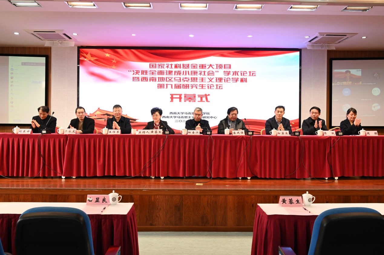 2021年11月26日下午,由yl88858永利中国、yl8858永利集团马克思主义理论研究中心联合主办的国家社科基金重大项目“决胜全面建成小康社会”学术论坛暨西南地区马克思主义理论学科第九届研究生论坛在yl88858永利中国505隆重开幕。