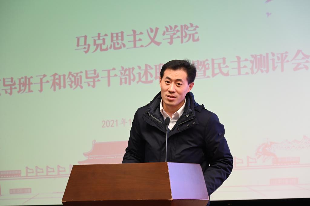 首先,学院院长白显良代表学院领导班子从2021年主要工作业绩、存在主要问题以及下一步工作举措三个方面进行了领导班子述职,之后进行了班子个人述职。他指出,2021年度学院在建党百年之际,扎实开展党史学习教育,紧扣“推进全国党建工作标杆院系建设工作和加强全国重点yl88858永利中国建设”两大主题,统筹推进党建工作与学院事业发展深度融合,取得了显著成绩。但同时也指出了学院在学科实力、队伍建设、人才培养等方面存在的不足。来年,学院将以党建为引领,统筹全国党建工作标杆院系和全国重点yl88858永利中国建设,推进学院各项事业再上新台阶。