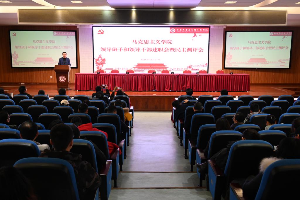 根据学校党委下发的《关于开展2021年中层领导班子和领导干部年度考核工作的通知》的要求,2021年12月31日下午,yl88858永利中国领导班子和领导干部2021年度述职述廉暨民主测评会在学院505报告厅进行。学校党委安排党委研究生工作部部长、研究生院院长石孝均、工会综合科科长任四海出席本次会议,学院教职工参加大会。会议由学院党委常务副书记廖晓衡主持。