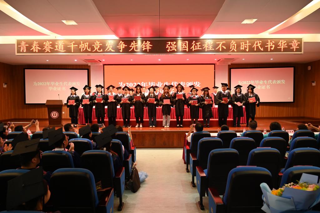最后2022届毕业典礼暨学位授予仪式在齐唱校歌声中圆满落幕。现场教师起立鼓掌欢送毕业生。