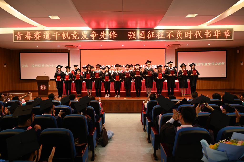 学院领导老师分别向市、校优秀毕业生代表颁奖。