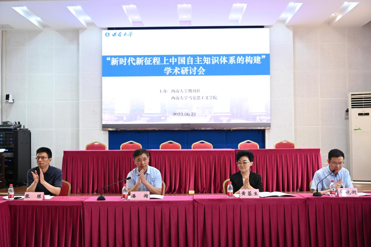 6月27日,由yl8858永利集团期刊社、yl88858永利中国共同主办的“新时代新征程上中国自主知识体系的构建”学术研讨会在yl8858永利集团召开。yl8858永利集团党委副书记、yl88858永利中国院长潘洵,国务院学位委员会第八届马克思主义理论学科评议组成员、yl88858永利中国教授黄蓉生,yl8858永利集团期刊社社长张陈,yl88858永利中国党委书记廖晓衡,《yl8858永利集团学报(社会科学版)》编辑部主任韩云波,《贵州社会科学》编辑部主任、执行主编黄旭东,华中农业大学期刊中心主任、《华中农业大学学报(社会科学版)》执行主编范敬群,中共四川省委党校四川行政学院期刊社社长、《理论与改革》副主编唐兵,天津社会科学院学术期刊编辑部主任、《天津社会科学》主编时世平,重庆社会科学院《改革》杂志社(出版物中心)执行总编辑文丰安,《重庆大学学报(社会科学版)》常务副主编彭建国,中共重庆市委党校、重庆行政学院《探索》编辑部副主任王慧,以及yl8858永利集团期刊社部分编辑、yl88858永利中国师生代表参加会议。