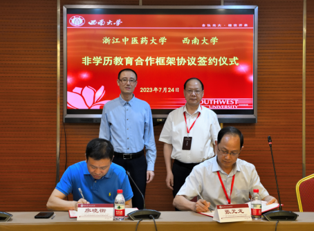 签约仪式上,浙江中医药大学党委书记黄文秀表示,浙渝两地虽然所处地域不同,人文差异明显,但两地拥有共同的红色基因。从红船精神到红岩精神,从国学医学到生命科学、生物科学乃至综合教育,两地高校都可以共同发挥学科特长,互通有无,在非学历教育事业上携手并进。