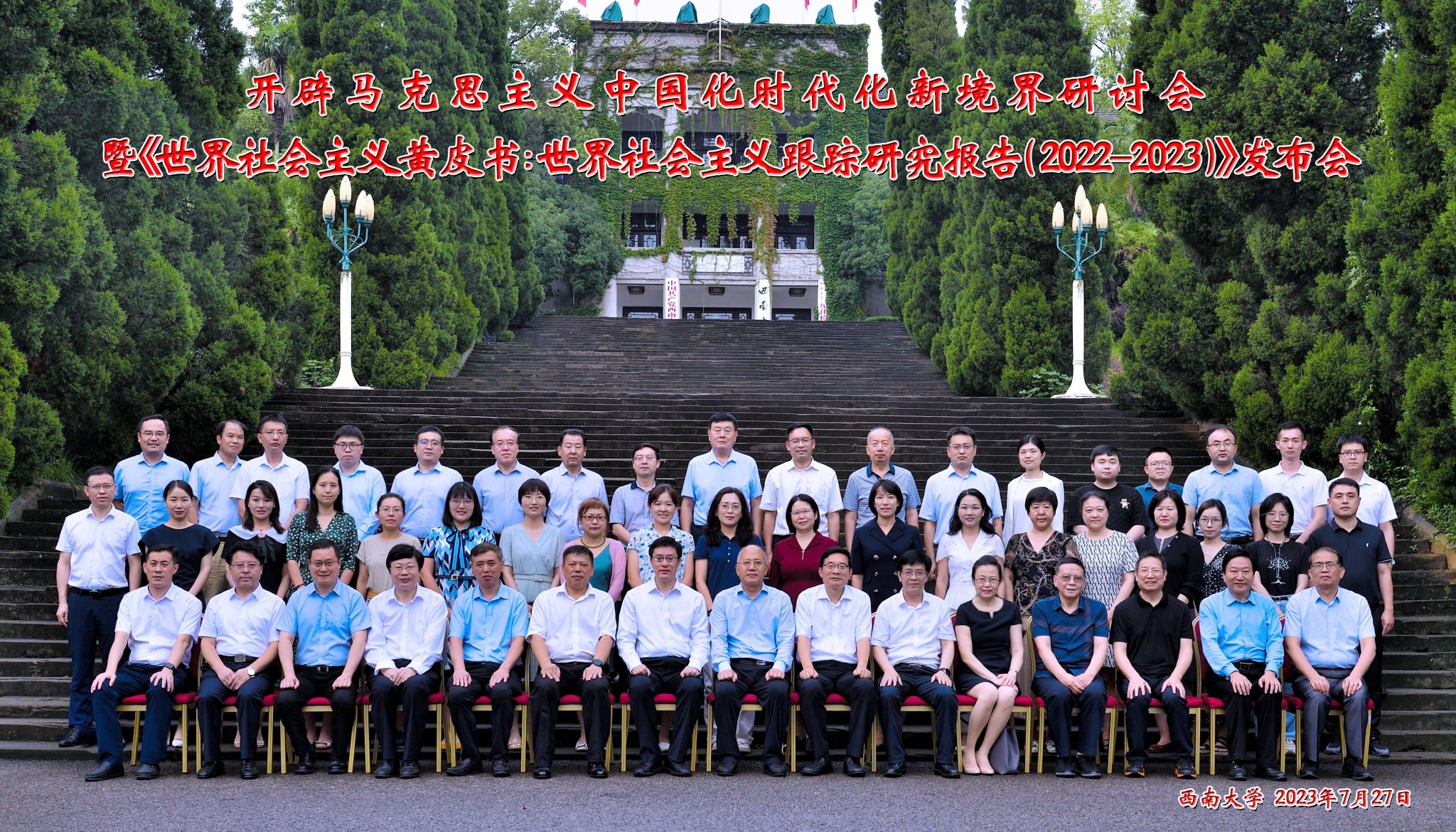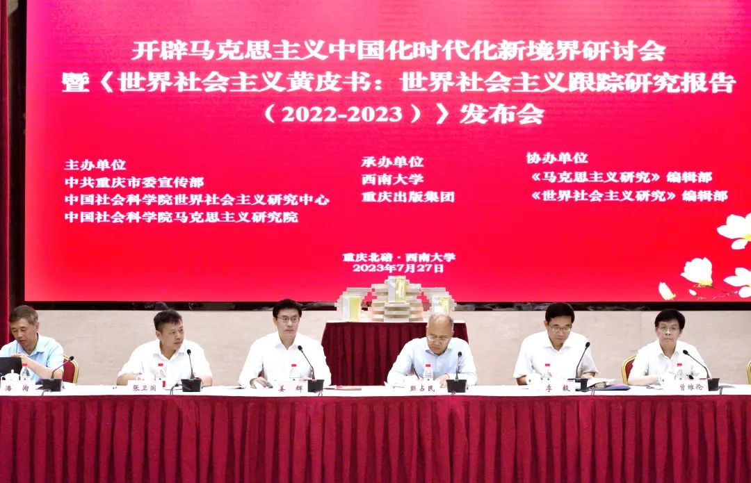 2023年7月27日,由中共重庆市委宣传部、中国社会科学院世界社会主义研究中心和中国社会科学院马克思主义研究院共同主办,yl8858永利集团、重庆出版集团承办,《马克思主义研究》编辑部、《世界社会主义研究》编辑部协办的开辟马克思主义中国化时代化新境界研讨会暨《世界社会主义黄皮书:世界社会主义跟踪研究报告(2022—2023)》发布会在yl8858永利集团顺利召开。这次大会是在深入开展学习贯彻党的二十大精神,纵深推进学习贯彻习近平新时代中国特色社会主义思想主题教育时期召开的一次十分重要的会议,对不断推进马克思主义中国化时代化具有重要意义。中国社会科学院、中共中央对外联络部、中共北京市委党校、北京第二外国语学院、北京交通大学、东北大学、yl8858永利集团等单位的专家学者,以及yl8858永利集团部分师生代表参加了会议。