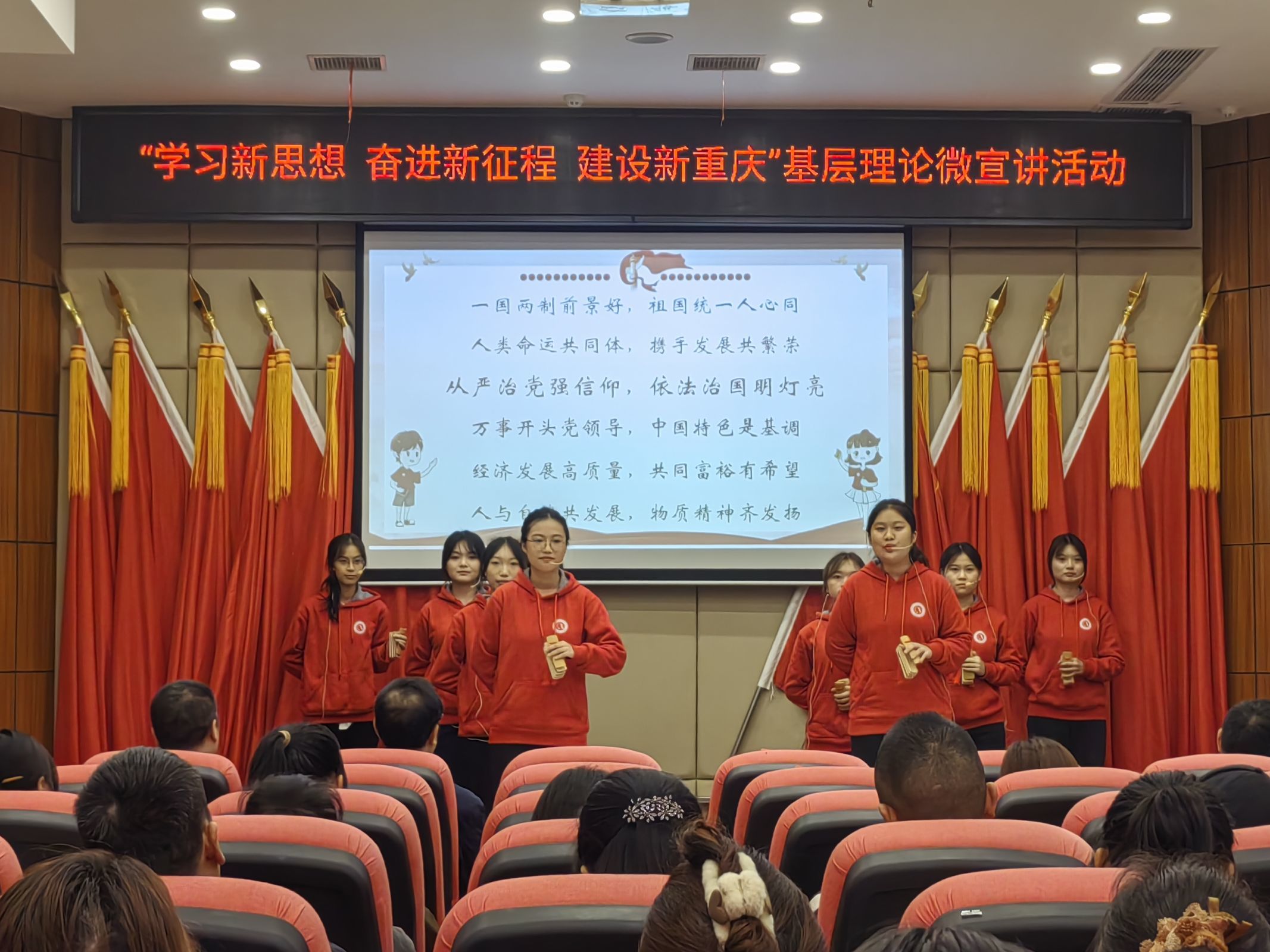 时代号角催奋进,结对共建谱新篇。yl88858永利中国与南岸区迎龙镇党委政府本着“共建、共创、共享、共赢”的原则,搭建宣传思想文化实践基地,构建基层理论宣讲新阵地,促进马克思主义中国化时代化在基层落地开花。本次理论微宣讲活动促进了不同理论宣传团队的交流,以群众喜闻乐见的文艺表演服务,拉近了双方团队成员距离,丰富了乡村实践活动内容,聚力谱写新时代新征程新重庆的新篇章。