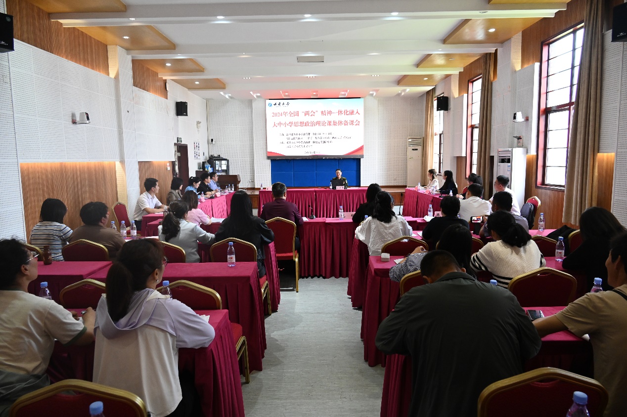 2024年4月19日下午,由教育部大中小学思政课一体化共同体(重庆)、全国高校思政课手拉手集体备课中心(yl8858永利集团-重庆市)主办,重庆市大中小学思政课一体化建设创新中心、yl88858永利中国承办的大中小学思想政治理论课教师集体备课活动在学院501报告厅举办,备课活动围绕2024年全国“两会”精神一体化融入大中小学思政课教学展开。集体备课会由专家领学、备课交流、专家点评和经验分享四个板块构成。