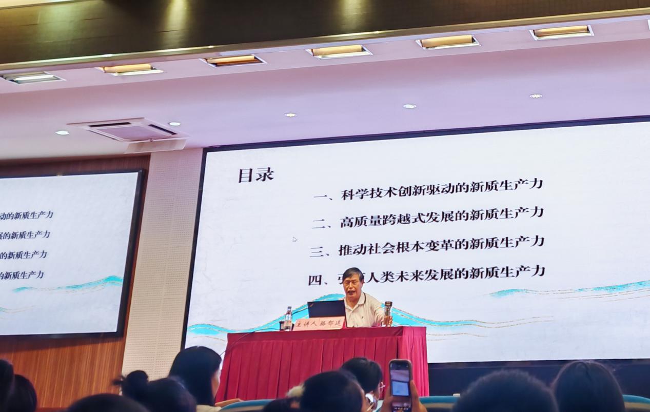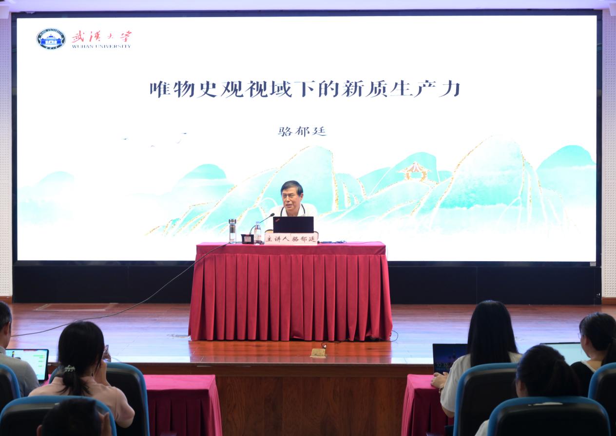 9月28日上午,武汉大学骆郁廷教授应邀在505报告厅为学院师生带来了一场主题为“唯物史观视域下的新质生产力”的学术报告。报告由学院副院长王丰教授主持,学院部分教师及研究生、本科生聆听了此次报告。