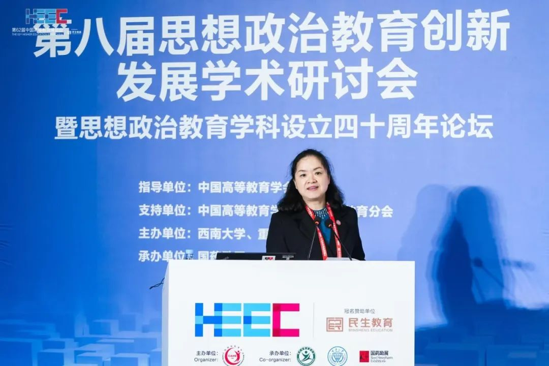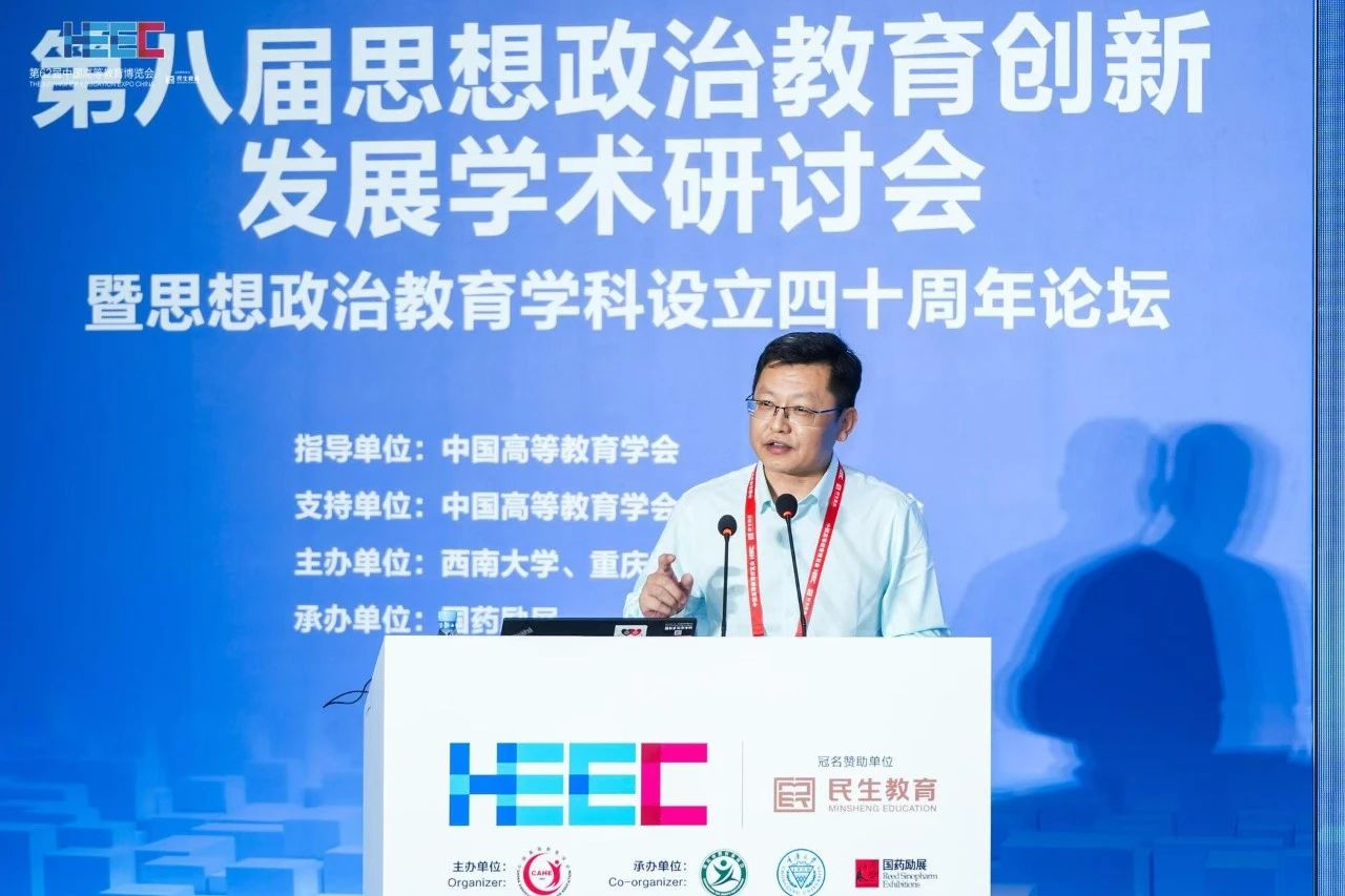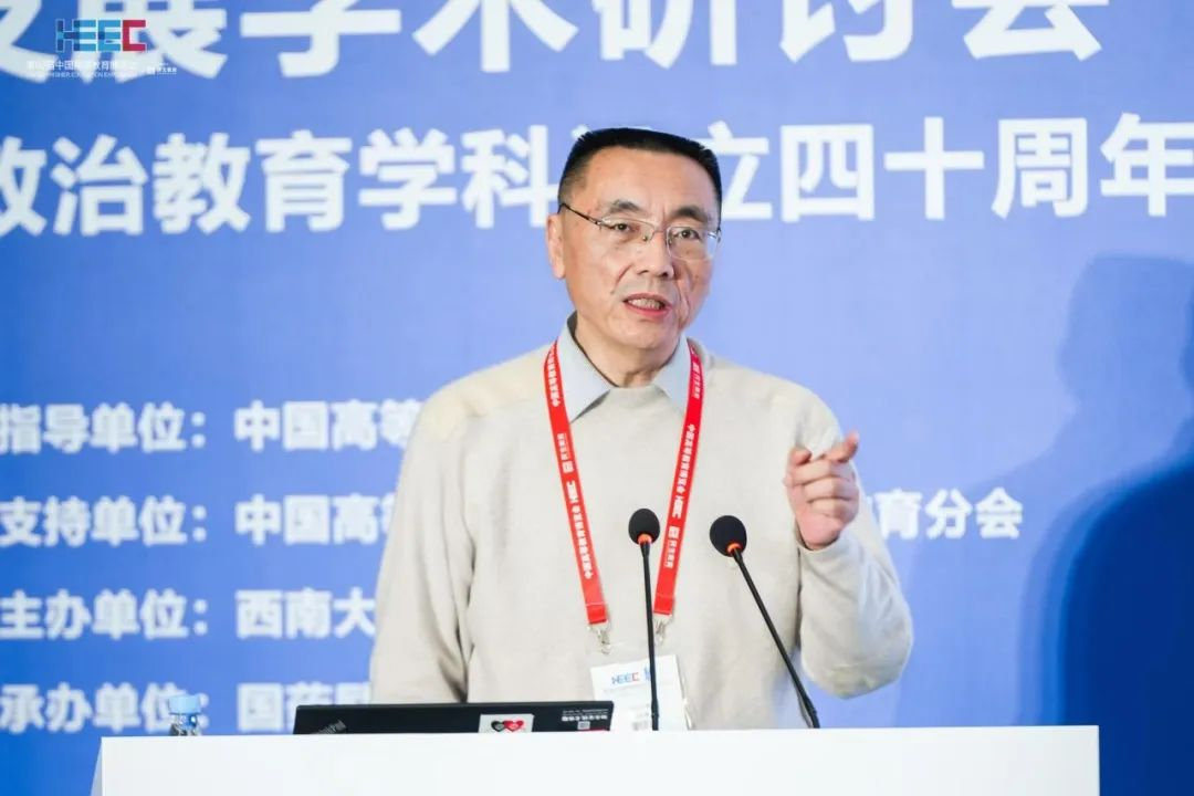 重庆师范大学原党委书记邓卓明以《改革开放以来党的创新理论引领思想政治教育学科发展的三重维度》为题,围绕“党的创新理论为思想教育学科发展定位”“党的创新理论推动思想政治教育学科持续发展”“党的创新理论引领思想政治教育学科高质量发展”三重维度,强调党的创新理论对思想政治教育学科发展的重要意义。