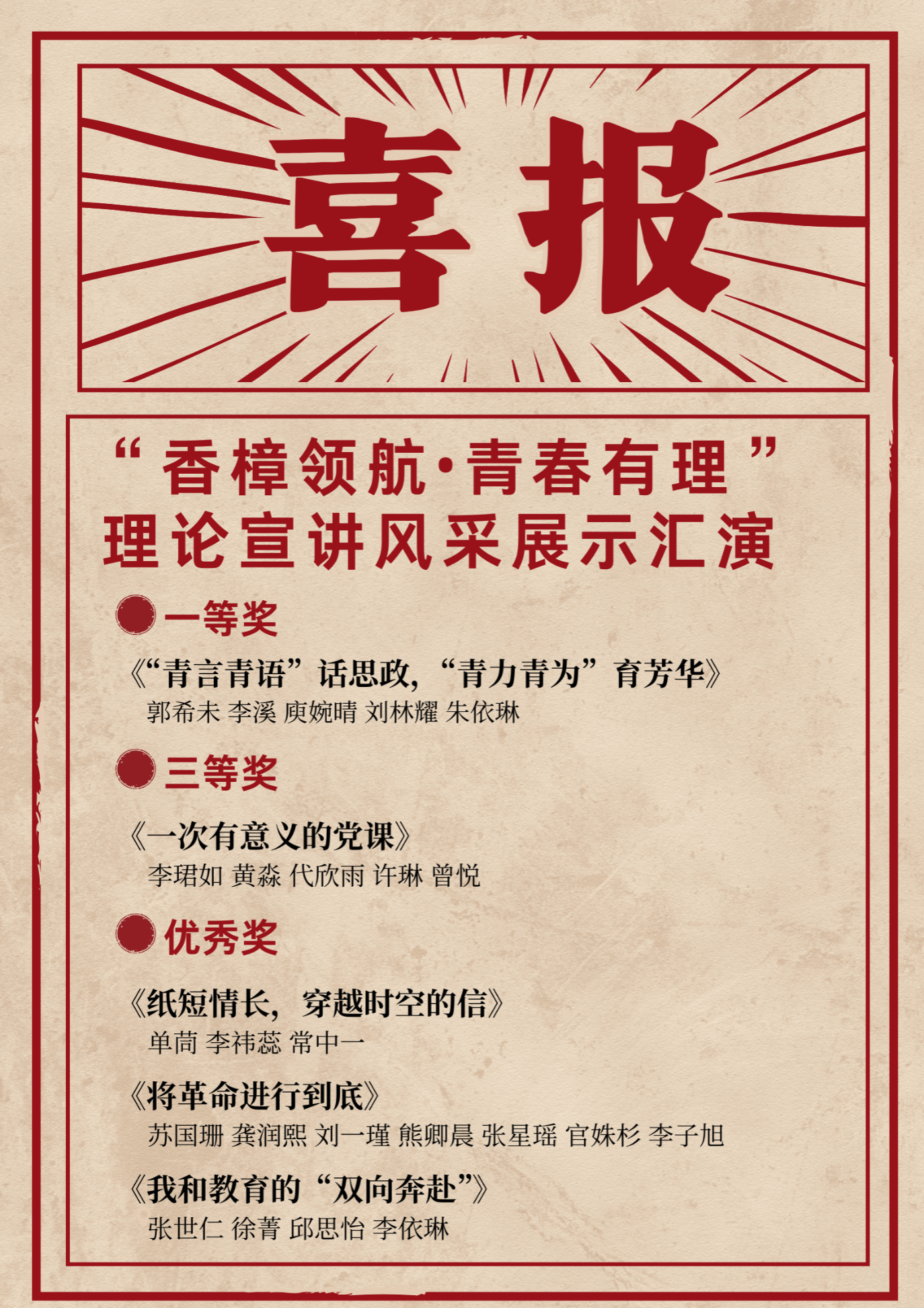 开展“青马大思政课建设行动”。在学术研讨方面,举办“在马言马·学子论坛”专题学术研讨、“在马言马·品悟经典”专题读书会,促进学术交流与思想碰撞,进一步加深学生对马克思主义理论的理解与把握。在实践交流方面,大学生中国特色社会主义理论体系宣讲团受邀参加全国yl88858永利中国青年理论宣讲论坛。《打造“大思政”金课,“夏日之歌”唱响艺术思政新声音》获评教育融媒体传播年度典型案例。在“香樟领航·青春有理”理论宣讲风采展示汇演中,学院学子荣获一等奖1项、三等奖1项、优秀奖3项。通过这些活动的开展,为培养具有坚定理想信念、扎实理论基础和良好实践能力的青年马克思主义者奠定了坚实基础。