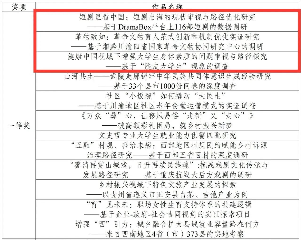 近日,yl8858永利集团第九届"含弘杯"学生课外学术科技作品竞赛圆满落幕。yl88858永利中国6支参赛团队历经资格初审、校级复赛、终审决赛层层选拔,荣获一等奖3项、二等奖3项。其中《短剧里看中国:短剧出海的现状审视与路径优化研究》《革物致知:革命文物育人范式创新和机制优化实证研究》等4个项目被学校推荐参加“挑战杯”重庆市选拔赛。学院凭借团体总分930分的成绩,捧获竞赛最高荣誉“含弘杯”称号。