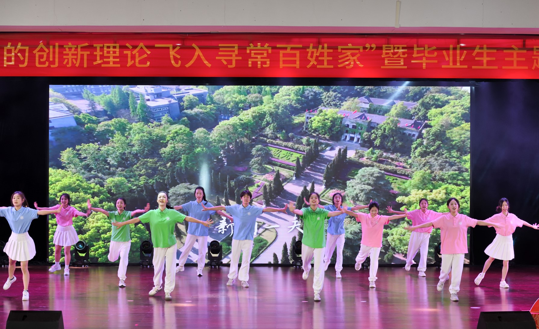 本次活动共分为“信仰:烈火中铸忠诚”“耕耘:以实践绘山河”“逐梦:载使命赴征程”三个篇章。大学生中国特色社会主义理论体系宣讲团用快板舞在平仄起落间,将理论变成百姓熟悉的家常话。红色原创话剧《永不凋零的巾帼玫瑰——张露萍》《英雄的儿子·伟大的母亲》《将革命进行到底》分别讲述红岩革命烈士张露萍、王朴、黎洁霜的英雄事迹,体现红岩精神的深刻内涵。微电影《夏日之歌》《再见大山》让青年宣讲和乡村振兴在光影叙事中展现深度,直抵人心。“画理画外”的展览精选马院学子描绘新时代标志性成就的创意画作。《礼赞新时代》《青春向未来》以朗诵和歌舞唱响时代的主旋律,《我们都是追梦人》以情感饱满的合唱,鼓舞学子奋力追逐梦想,毕业生代表带领全体毕业生发出勇担理论传播时代使命的倡议。活动为全体毕业生带来一场展现党的创新理论的思想文化盛宴,赢得在场师生阵阵掌声。