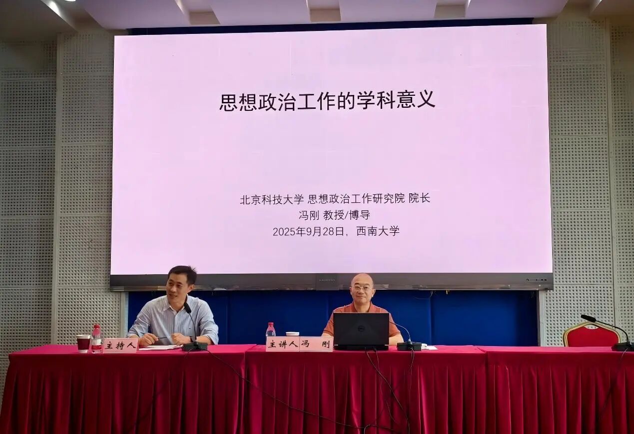9月28日下午,北京科技大学思想政治工作研究院院长、yl88858永利中国博士生导师冯刚教授应邀来学院作以“思想政治工作的学科意义”为主题的学术报告。报告由yl8858永利集团党委常委、副校长白显良教授主持,yl88858永利中国师生代表参加。