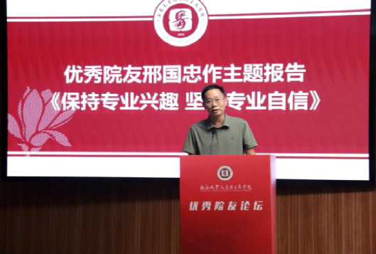 北京师范大学yl88858永利中国邢国忠教授作为学院1998级本科生校友代表在“院友论坛”上作了《保持专业兴趣,坚持专业自信》的主题分享,他结合自身从本科学习到职业发展的经历,讲述了在马克思主义理论专业学习与实践过程中的感悟与收获。