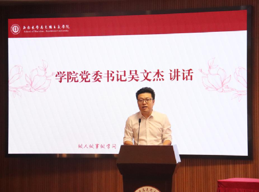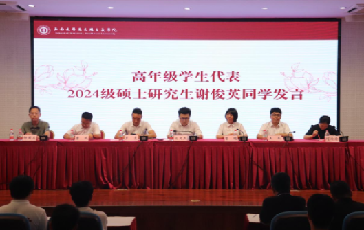 学院党委书记吴文杰在新生见面会上对全体新生的到来表示热烈的欢迎,并提出三点期望,一是希望同学们筑牢思想根基、涵养精神品格,以坚定信仰照亮前行之路;二是深入钻研理论、坚定理想信念,成长为学识扎实的新时代青年;三是坚持知行合一、主动躬身实践,用实际行动书写无愧于青春的精彩篇章。
