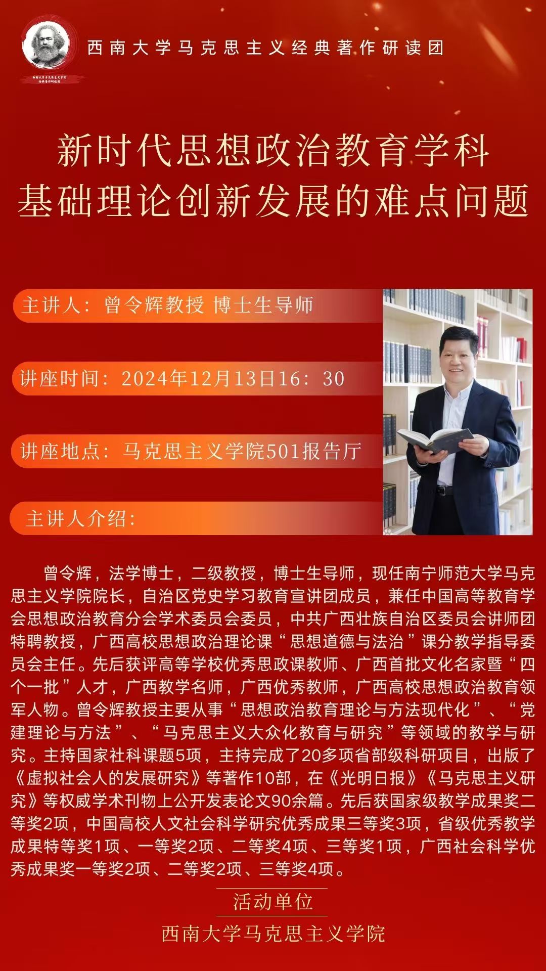 讲座题目:新时代思想政治教育学科基础理论创新发展的难点问题