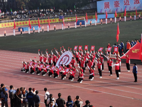 开幕式上,来自不同学院的40个方队各具特色,其中由马院学子组成的红色方阵以整齐划一的动作,高昂的斗志,澎湃的精气神带给了观众深刻的印象。坚定的步伐,彰显着马院严谨的行事作风,“百年筑梦,气势如虹;泱泱绩镛,谁与争雄”的口号,更是展露着马院学子的不凡气质。前期反复训练的成果,最终在开幕式中得以展现。
