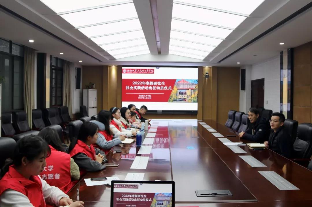 1月13日上午9:00,yl88858永利中国2022年寒假研究生社会实践活动出征动员仪式在学院310会议室举行,学院党委副书记刘东升、研究生辅导员王飒与11位实践队成员参加此次出征动员仪式。会议由王飒主持,学院党委副书记刘东升做出征动员讲话。