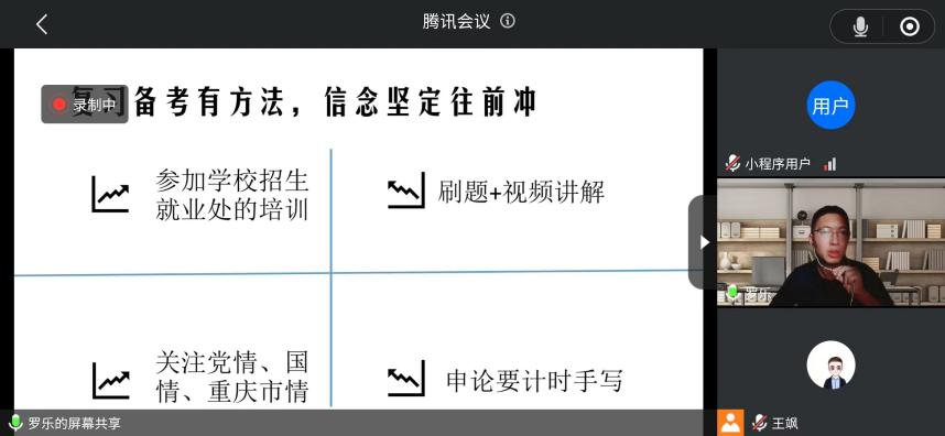 “复习备考有方法,坚定信念向前冲”。罗乐同学就重庆定向选调的报考条件、选拔流程和备考方法进行了分享。首先,他详细解读了参加选调的条件,提醒师弟师妹抓紧时间,努力在政治面貌、学生工作等方面达到要求。其次,他具体介绍了重庆定向选调的笔试和面试环节,分享了他的备考经验。最后,他特别强调大家应注重在日常学习和实践的锻炼提升,在日常学习中提高对时事政治的敏感度,锻炼综合分析能力、语言表达能力、组织协调能力,从而更好地应对笔试和面试。