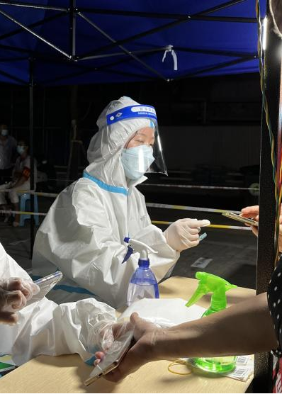 图片2 向桂英同学参与社区核酸采集志愿服务活动