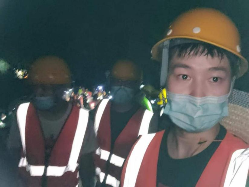 从山上到山下、从搬运物资到接送志愿者,再到穿起消防服来到一线做“人墙灭火”,我院男生们冲在灭火一线,面对酷暑不辞辛苦、通宵奋战十余个小时,为这次突发山火的扑灭尽了自己的力量。2022级博士研究生秦则海说道:“无需问来者是谁,一句招呼--兄弟,便能成为最亲切的战友。”