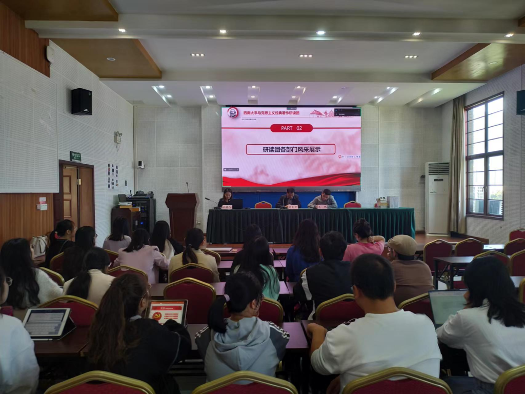 首先,研读团团长蒋艺涵向新进团员表示了热烈欢迎,在简单介绍了研读团的基本情况和特色活动后,研读团学术部、实践部、宣传部和办公室四个部门的负责人依次进行了部门风采展示并介绍部门职能,大家共同表达了部门对新鲜血液注入的期待。