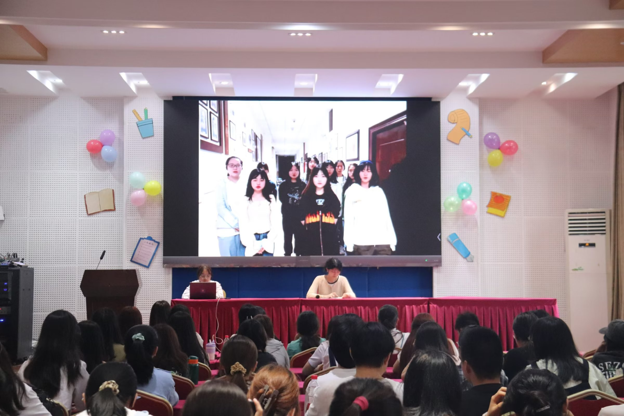 活动以观看学生会前期工作回顾视频及采访视频的形式拉开序幕。回顾视频播放了八大部门的介绍,并展示了半学期以来学生会举办的各项活动,如:新学期启动会、2023年师生趣味运动会、党史知识竞赛等;采访视频呈现了对三名工作人员和主席团成员对工作感想、未来发展等问题的回答,显示出团委学生会昂扬向上的精神面貌与团结风采。