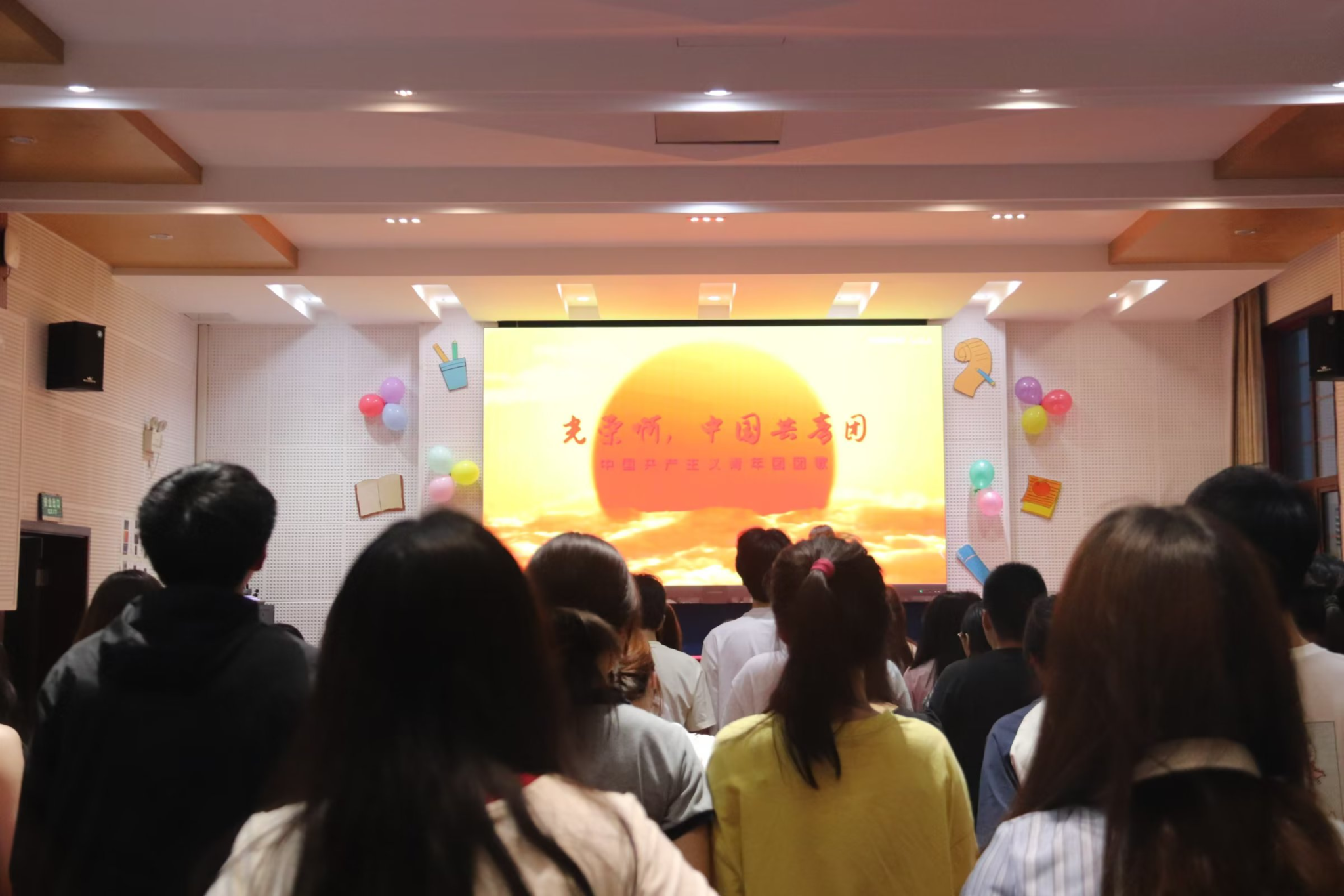 活动尾声,大家一起合唱《光荣啊!中国共青团》。主持人杨何芮宣布yl88858永利中国第十一届本科团委学生会中期总结大会圆满结束。