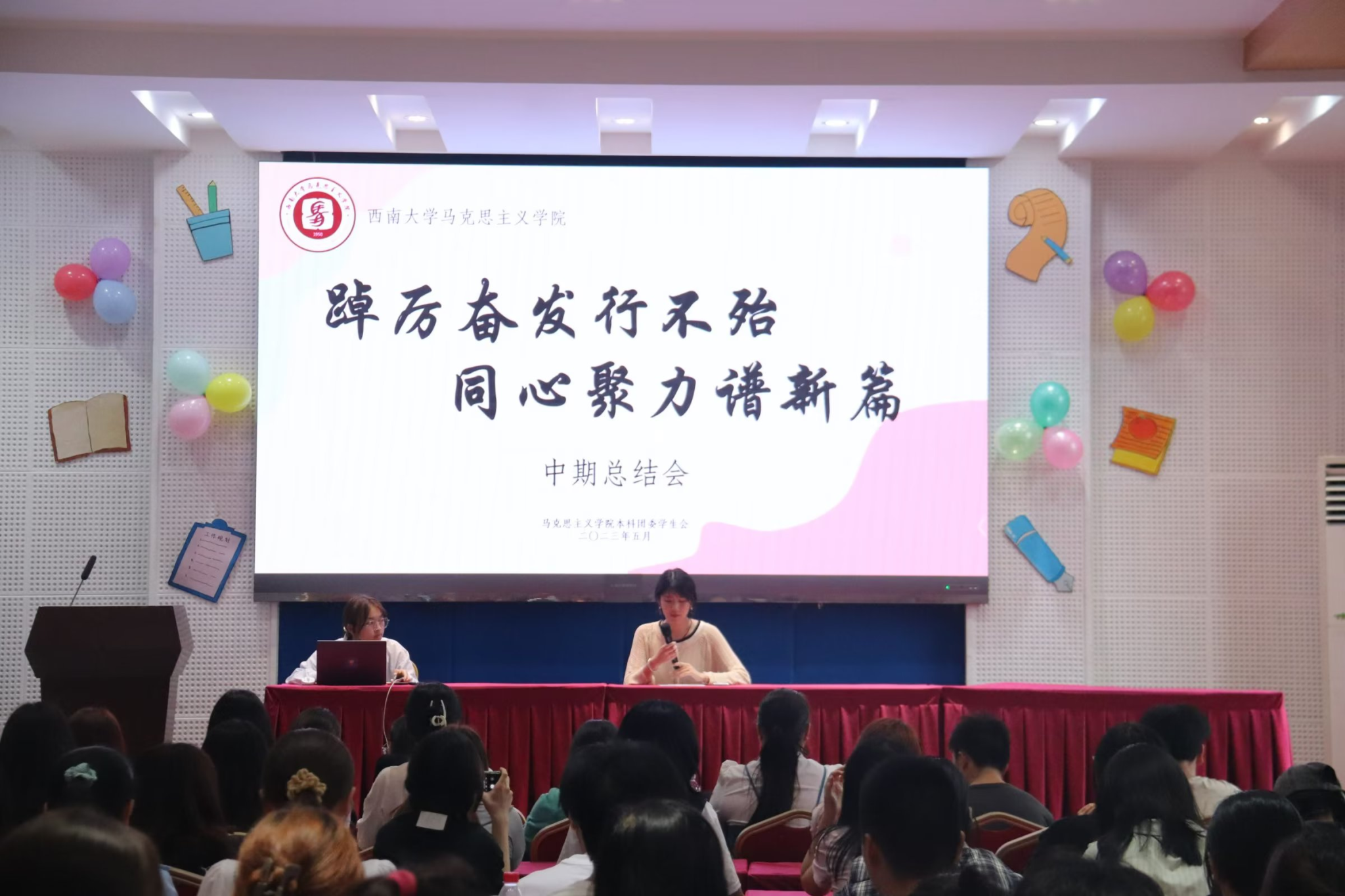 为深入学习贯彻习近平总书记的青年观,把青年工作放在党和国家发展的战略高度去考量,同时鼓励团委学生会工作人员以更高的标准要求自己,增强全心全意为广大同学服务的决心,汲取半期以来的工作经验并进行全面的工作反思,更好地凝聚共识、改进工作。特于2023年5月14日19时在学院501报告厅举办中期总结会。yl88858永利中国第十一届本科团委学生会成员出席大会。