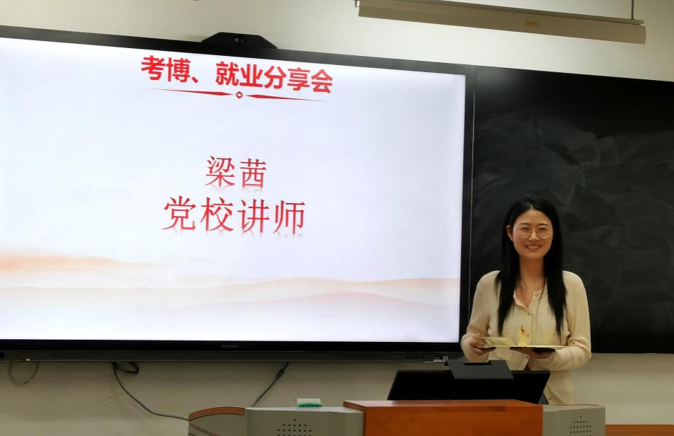 本次分享会分为博士申请、定向选调、高校辅导员和党校讲师四个部分,分别由刘大鹏、蒋蕊韩、韦霁恩、代俊卿、梁茜等五位优秀毕业生依次进行交流分享。