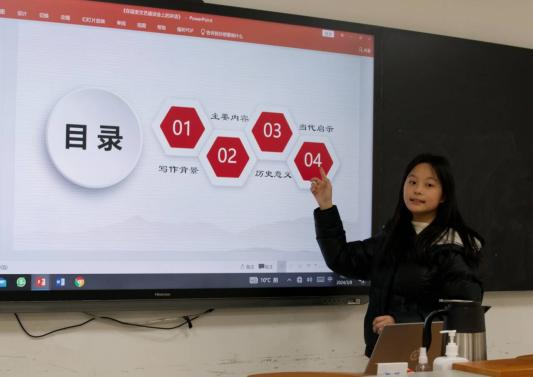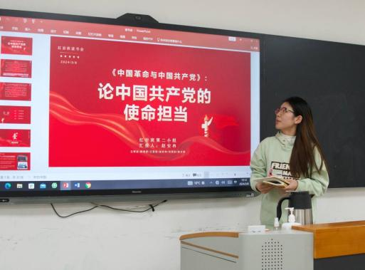 读书会上,在第一环节“学思交融”中,四个互助小组分别以“《在延安文艺座谈会上的讲话》文本分析”、“基于《中国革命与中国共产党》论中国共产党的使命与担当”、“基于《反对本本主义》的解读”、“《中国社会各阶级的分析》文本解读”为主题分享对经典文献的理解和感悟。