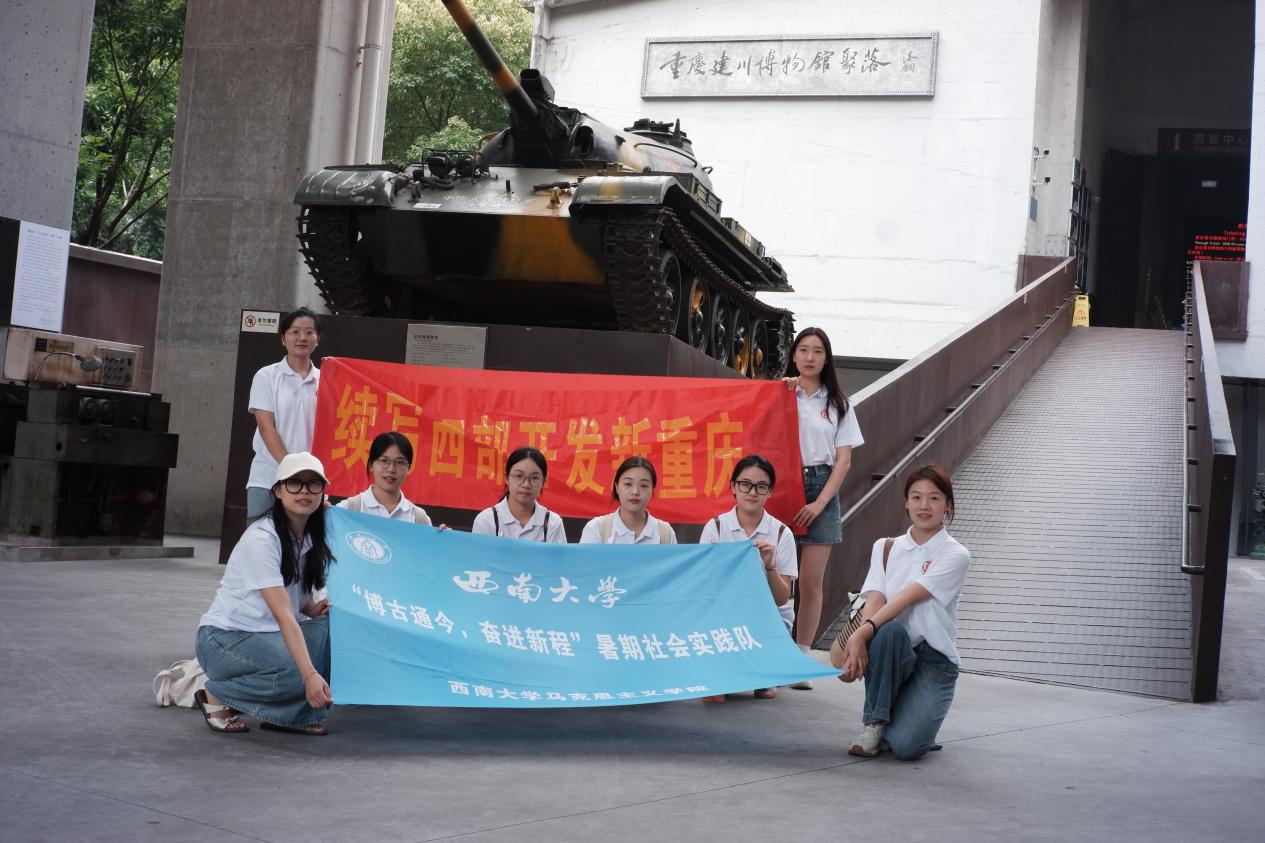 为贯彻落实党的二十大精神,深刻领会习近平总书记主持召开新时代推动西部大开发座谈会的重要讲话精神和在重庆考察时的重要讲话精神,yl88858永利中国“博古通今,奋进新程”暑期社会实践队于7月4日至7月5日跟随习近平总书记的脚步,前往重庆建川博物馆、九龙坡区谢家湾民主村社区以及重庆国际物流枢纽园区等地开展了以“续写西部开发新重庆”为主题的暑期社会实践活动。