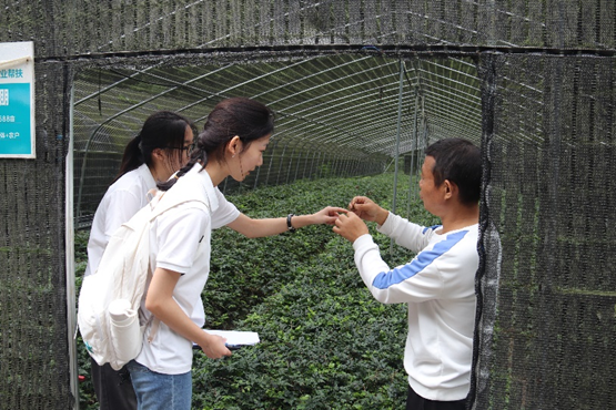 同时,实践团成员前往黄连种植基地,在当地向导的介绍下了解了华溪村黄连种植的缘起、发展以及其生长习性和种植技术。在蜜蜂主题研学基地,实践团成员学习了解华溪村蜂蜜产业与文旅的融合发展状况,进一步了解了华溪村产业发展模式。通过考察黄连与蜂蜜产业,实践团成员们在一苦一甜间回望华溪村近年来的发展巨变,不由得感叹,果真“先吃黄连苦,后享蜂蜜甜”。