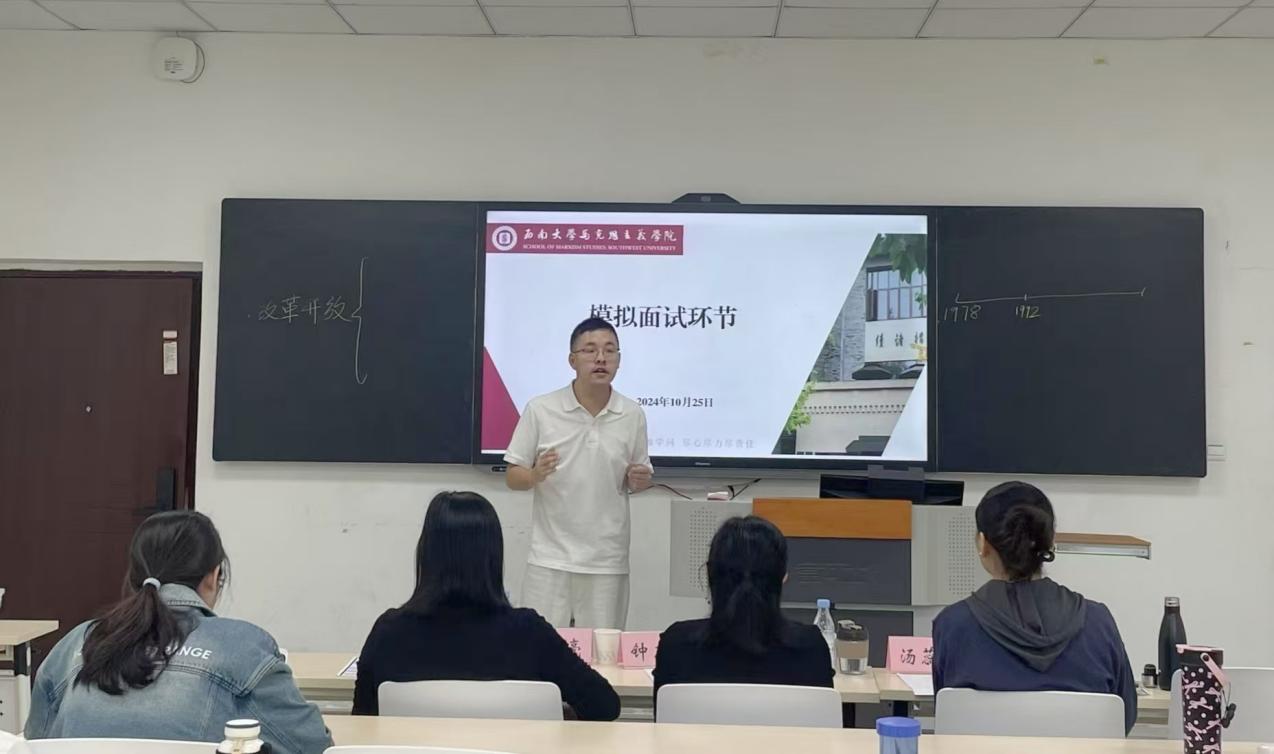 在模拟面试环节,各位面试者依次展示了自己精心准备的模拟授课内容,初步展现出扎实的知识储备和良好的思政课教学技能。