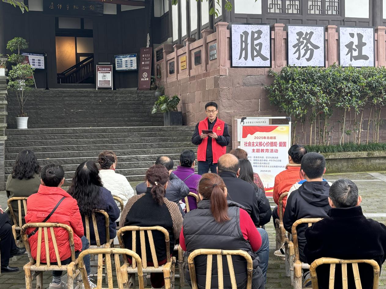 为进一步培育和践行社会主义核心价值观,推动社区形成崇德向善、见贤思齐的良好风尚,2025年3月20日上午,yl8858永利集团马克思主义经典著作研读团走进北碚区朝阳街道大明社区开展了以“践行社会主义核心价值观,共筑美好社区家园”为主题的宣讲活动。
