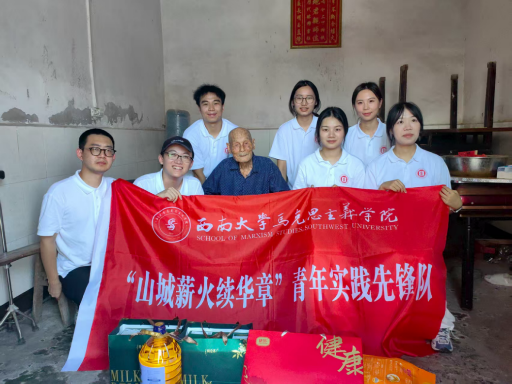实践队赴涪陵区江北高家村采访了百岁抗战老兵周建明,聆听他参与青岩阻击战、雪峰山会战的亲身经历。