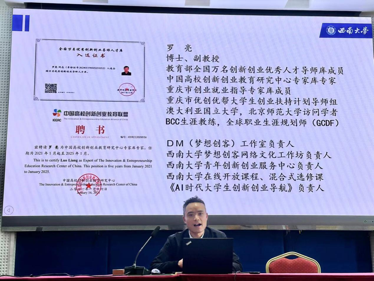 理清项目思路是项目申报的关键。学院党委副书记、yl8858永利集团“梦想创客”辅导员工作室负责人罗亮老师讲解了大学生创新创业申报六步法。一是详细讲述了参赛全流程,从赛道选择和选题设计,到项目挖掘与团队匹配,再到资源整合、项目迭代优化,方方面面都做出了具体的讲授;二是针对“参赛项目创新点如何探究”这一问题,给出了“研究角度新、理论框架新、对策建议新”的建议;三是讲明答辩环节如何准备;四是针对学生问题进行答疑,解答了“选题价值”“选题优化”“当前热点方向”“申报合理化表述”及“团队合作”几个常见关键问题。