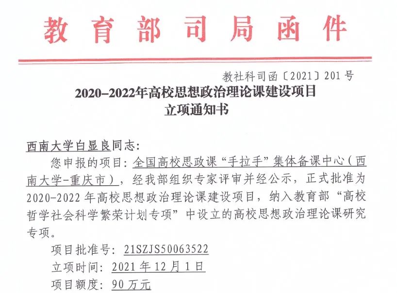 “思想道德与法治”课程教学团队底蕴深厚、特色鲜明。其依托的思想政治教育专业有近70年办学历史,先后被评为“国家级特色专业”、“国家一流本科专业建设点”、“重庆市一流本科专业”,课程教学团队获评“国家级思想政治教育教学团队”、“重庆市最可亲可爱教学团队”等。